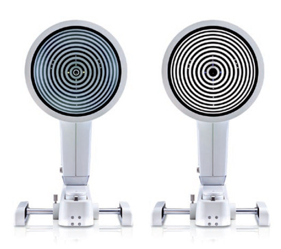 Ten slotte hebben we nog het Placido-cone systeem. Onze favoriet! De Medmont Meridia is hier een voorbeeld van. Ook dit type topograaf werkt met lichtgevende ringen die op de cornea (of eigenlijk de traanfilm) worden geprojecteerd. Het cone-systeem werkt echter met 24 tot 32 ringen, die dichter op elkaar liggen.